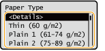برای بررسی تنظیمات دقیق نوع کاغذ، <Details>