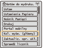 (Główny). Na wyświetlaczu jest wyświetlany ekran <Ekran główny> lub ekran ustawień, umożliwiając zainicjowanie funkcji, takich jak <Nośnik Pamięci> i <Portal mobilny>. Wyświetlacza można również użyć do sprawdzenia informacji takich jak komunikaty o błędach i stan działania urządzenia.