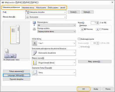 Określ konieczne ustawienia drukowania i naciśnij na [OK].