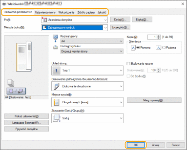 Określ ustawienia drukowania według potrzeb i kliknij przycisk [OK].
