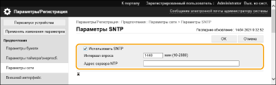 Простой протокол сетевого времени (SNTP) позволяет настраивать системные часы с помощью сервера времени в сети. Если используется SNTP, сервер времени проверяется через указанные интервалы; это позволяет постоянно поддерживать правильное время. Параметры SNTP можно указать через удаленный интерфейс пользователя.