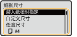 如果您频繁需要更改要添加的纸张,需设置为<任意尺寸>;此举将减少每次更改设置所需的步骤数。在打印机驱动程序中的设置与添加纸张的尺寸有较大不同时,还可显示错误信息。