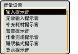<作业完成提示音> | 在打印等操作完成时发出的声音 |