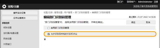 选中此复选框以接受来自不支持部门识别码管理的打印机驱动程序的打印作业。