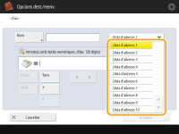 ![]() | Podeu desar l'adreça de correu electrònic d'un destinatari que es pugui utilitzar quan envieu originals llegits a la llibreta d'adreces. També podeu desar una destinació d'I-fax i la ubicació de la carpeta d'un servidor de fitxers (adreça IP i camí) a la llibreta d'adreces com a destinació. |