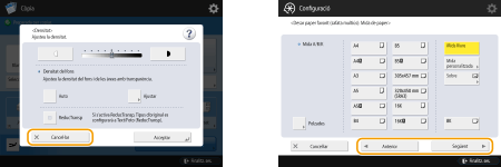 A més, es mostren botons com ara <Cancel·lar> que cancel·la l'opció i torna a la pantalla anterior, <Següent> que aplica l'opció per passar a la pantalla següent, <Anterior>, que torna a la pantalla d'opcions anterior i <Tancar> que tanca la pantalla oberta actualment.
