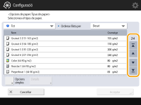Si hi ha diversos treballs o fitxers a una llista, podeu prémer <Nom> o <Data/hora> per ordenar la llista d'elements. Quan es mostra , els elements s'ordenen en sentit ascendent, i quan es mostra , s'ordenen en sentit descendent.