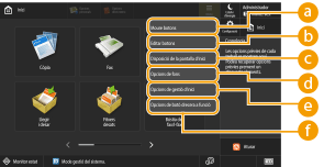 <Restringir funcions mostrades>: Seleccioneu les funcions o aplicacions MEAP que s'han d'amagar a la pantalla <Inici>.