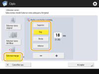 Si voleu ajustar l'amplada de cada vora per separat, premeu <Esborrar vores original> o <Esborrar vores del llibre> i, a continuació, premeu <Ajustar per separat> per introduir les amplades de la part que voleu esborrar.