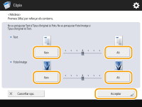 Premeu <Alt> per ajustar el nivell de manera que el text i les línies es copiïn amb precisió o premeu <Baixa> per copiar tons mitjans més suaument en imatges impreses, etc.