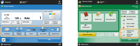 Tlačítka nastavení, která se zobrazují na obrazovce základních funkcí (pro kopírování a skenování), můžete změnit. Můžete také zobrazit jinou obrazovku základní ch funkcí, která bude přizpůsobená pro každého přihlášeného uživatele.
