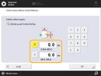 Zadejte délku strany <X> a strany <Y>. Stiskněte <X> nebo <Y> a zadejte délku každé strany pomocí číselných tlačítek.