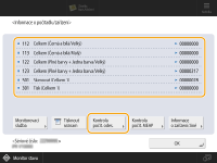 Stiskněte tlačítko <Monitorovací služba> <Test komunikace> a zkontrolujte komunikaci se serverem vzdáleného monitorování. Po aktivaci této funkce se informace o zařízení budou pravidelně odesílat na server vzdáleného monitorování. Aby bylo možné funkci používat, je nezbytné povolit komunikaci mezi zařízením a serverem poskytujícím službu.Na stroji můžete vytisknout seznam s počtem stran použitých pro kopírování, tisk a skenování. Na této obrazovce můžete také zkontrolovat stav počitadel pro jednotlivé aplikace MEAP. Stiskněte <Kontrola počit. MEAP> na obrazovce v kroku 2. Stisknete-li na stejné obrazovce <Informace o zařízení/Jiné> <Kontr. konfig. zařízení>, můžete zkontrolovat volitelné doplňky nainstalované na stroji a verzi bezpečnostního čipu pro šifrování dat na úložném zařízení.Informace týkající se podmínek počtu získáte u prodejce nebo servisního zástupce. |
