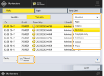(Monitor stavu), otevře se obrazovka Monitor stavu, ze které můžete kontrolovat historii používání jednotlivých funkcí, jako je kopírování, tisk, odesílání e-mailů, odesílání/přijímání I-faxů atd. Z této obrazovky také můžete tisknout historii používání jednotlivých funkcí.![]() |