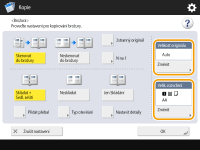Kopírujete-li brožuru s použitím oboustranných originálů, stiskněte <2stranný originál> a podle potřeby vyberte <Typ Kniha> nebo <Typ Kalendář>.
