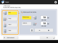 ![]() | Na kopiích můžete vytvořit okraje pro sešívání nebo děrování otvorů. Okraje pro vazbu můžete pro přední stranu a zadní stranu listů nastavit samostatně. |