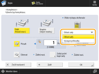 Pro některé kompletační funkce bude třeba nainstalovat volitelná zařízení. Volitelná zařízení V případě některých typů papíru nelze kompletační funkce používat. Specifikace hardwaru Při ukládání originálu na kopírovací deskuPo stisknutí <Volby> <Tvorba úlohy> na obrazovce základních kopírovacích funkcí můžete používat funkci Třídit/Skupina, i když originál uložíte na kopírovací desku.Při tisku s pomocí funkce třídění do skupin vložte mezi jednotlivé skupiny stránek oddělovač úlohVyberete-li <Skupina (Stejné stránky)>, můžete mezi jednotlivé skupiny vložit oddělovač úloh. Další informace viz v <Oddělovač úloh mezi skupinami>. <Oddělovač úloh mezi skupinami> Při konfiguraci nastavení v <Přístup k uloženým souborům>Funkce pro dokončení může být použita pouze tehdy, když tisknete soubor PDF/XPS nebo v případě souboru uloženého v poštovní schránce Mail Box. |