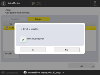 (Stop) på kontrolpanelet, mens et afsendelses/-printjob behandles, og en skærm, der fører til <Sendejob>/<Printjob> vises, bliver det igangværende afsendelses-/printjob på pause, og <Sendejob>/<Printjob> vises.
