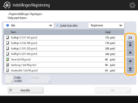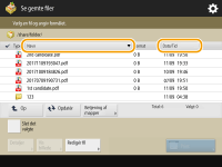 Hvis der er flere job/filer på en liste, kan du trykke på <Navn> eller <Dato/Tid> for at sortere listen over elementer. Når