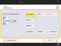 Selv når papir ilægges korrekt, registreres nogle små standardstørrelser muligvis ikke korrekt. Hvis der er tilfældet, skal du trykke på <Standardformat> og vælge papirstørrelsen.