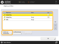 Hvis du vil anvende en nøgle og et certifikat, du selv genererer, skal du generere nøglen og certifikatet, inden du udfører fremgangsmåden herunder. Generering af nøglen og certifikatet til netværkskommunikation Hvis du vil anvende en nøgle og et certifikat, du henter fra en certifikatmyndighed (CA), skal du generere nøglen og certifikatet, inden du udfører fremgangsmåden herunder. Registrering af en nøgle og et certifikat Hvis du indstiller <Formatkrypteringsmetode til FIPS 140> til <Til>, kan du få TLS-kommunikationskrypteringsmetoden til at overholde USA's statsgodkendte FIPS (Federal Information Processing Standards) 140. <Formatkrypteringsmetode til FIPS 140> Hvis <Formatkrypteringsmetode til FIPS 140> er indstillet til <Til>, vil der opstå en fejl, du prøver at angive et certifikat til TLS, der anvender en algoritme, som ikke genkendes af FIPS (lavere end RSA2048bit). Der opstår en kommunikationsfejl, hvis du indstiller <Formatkrypteringsmetode til FIPS 140> til <On> og sender til en ekstern part, der ikke understøtter FIPS-godkendte krypteringsalgoritmer. Hvis <Formatkrypteringsmetode til FIPS 140> er indstillet til <Til>, skifter <CHACHA20- POLY1305> og <X25519> til <Fra>. Hvis <CHACHA20- POLY1305> eller <X25519> indstillet til <Til>, skifter <Formatkrypteringsmetode til FIPS 140> til <Fra>. |