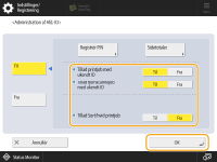 Vælg <Fra> for de funktioner, du vil administrere, og tryk derefter på <OK>.