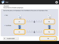 For at reducere moire ved kopiering af originaler, der indeholder printede fotos, som f.eks. tidsskrifter eller brochurer, skal du justere kontrollen i <Foto/Billede> til <Lav>.
