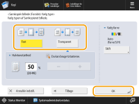 For at samkopiere formularbilledet uden at justere tætheden skal du trykke på <Fast>. For at samkopiere formularbilledet med formindsket tæthed skal du trykke på <Transparent> og justere tætheden.