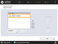 For at ændre navnet på et allerede registreret formularbillede skal du vælge navnet på formularbilledet på listen i trin 5 og trykke på <Detaljer>  <Omdøb formular>. For at slette et formularbillede skal du vælge formularbilledet på listen og trykke på <Slet>. Du kan gemme op til 100 billedformularer. Antallet varierer dog, afhængigt af lagerenhedens kapacitet. |