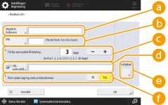 <URL-sndindstill.> Giver dig en e-mailunderretning om placeringen (URL'en) om den boks, hvor filer er gemt. Denne indstilling er praktisk til tjek af gemte filer fra skærmbilledet Remote UI (Brugerinterface til fjernbetjening).