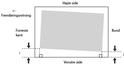 Hvis det printede billede er skråtstillet, kan du muligvis korrigere det forkert justerede billede ved at justere margenerne for 'i', som er afstanden fra papirets venstre kant til printområdet og 'j'.