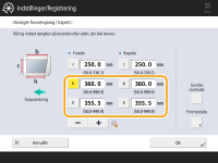<b>: | Indtast den målte længde fra printområdets højre, forreste kant til printområdets højre, nederste kant. |