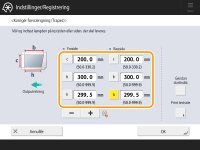 <b>: | Indtast den målte længde for mærket 'b' på testsiden (for det lange ark: den målte længde af mærket 'b', som er nærmest på papirets bagkant). |