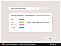 Advarselsskærmbilledet vises igen, når en anden farvetoner næsten er opbrugt, hvis <Vis fejlmeddelelsen Resterende toner> er indstillet til <Til>. |