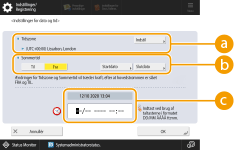 Justér maskinens dato/klokkeslæt. Disse indstillinger bør udføres korrekt, da datoen/klokkeslættet anvendes i tilfælde som f.eks. automatisk afsendelse af en mail på et angivet tidspunkt.