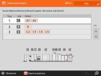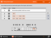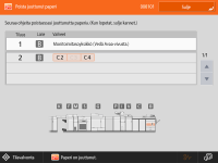 Seuraavissa taulukoissa näkyy tyypillisiä paperitukosnäyttöjä ja paperitukosten sijainteja (kuva) käytettäessä 1 300 mm:n pituisia arkkeja sekä viitteet tukosten mukaisiin toimenpiteisiin. Paperitukosten sijainnit voivat vaihdella hieman esimerkiksi paperin pituuden ja paperitukoksen ajoituksen mukaan. |