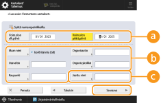 <Voim.olon alkamispäivä> / <Voim.olon päätt.päivä>Syötä voimassaolon alkamis- ja päättymispäiväys.