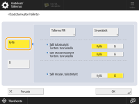 Varmista että osastokoodit on asetettu laitteeseen rekisteröidyille käyttäjille. Käyttäjätietojen tallentaminen paikalliseen laitteeseen Osastotunnusten hallinta on käytössä vain käyttäjille, jotka on tallennettu paikalliseen laitteeseen. Jos kirjaudut sisään järjestelmänvalvojan oikeuksilla, järjestelmänvalvojan tunnus ja PIN-koodi määritetään automaattisesti ja niitä käsitellään osastotunnuksena. |
