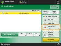 Tämä toiminto on käytettävissä vain, mikäli sähköpostiosoite tai tiedostopalvelin on määritetty vastaanottajaksi.