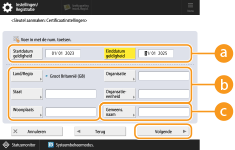 Configureer de noodzakelijke instellingen voor het certificaat en druk op <Volgende>.
