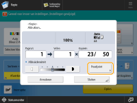 <Proefprint> wordt weergegeven terwijl u meerdere kopieën maakt in de modus Sorteren, Verschuiven of Nieten. <Proefprint> kan worden gebruikt wanneer "Staple Finisher-AF," de "Booklet Finisher-AF," of de "High Capacity Stacker-J" is aangesloten. |