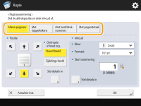 Als u <Instellingen Kopiesetnummering optie> instelt op <Aan>, worden de instellingen die u kunt opgeven, als volgt gewijzigd. <Instellingen Kopiesetnummering optie>