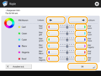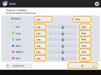 voor <Alle kleuren>. Als u elke kleur afzonderlijk wilt instellen, gebruikt u de knoppen links en rechts van elke kleur. Wanneer de aanpassing is voltooid, drukt u op <OK>.