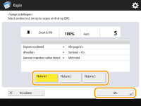 U kunt eerder gebruikte kopieerinstellingen oproepen. De details van de opgeroepen instelling kan voor het kopiëren worden gewijzigd.