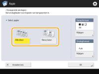 Plaats het transparant in de multifunctionele lade en het papier dat moet worden ingevoegd in de papierlade, en geef het papierformaat en -type voor het transparant en papier op. Papier plaatsen