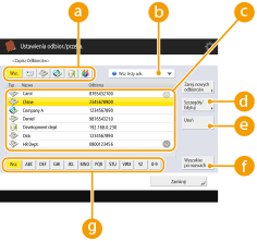 Lista rozwijana listy adresowejWybierz <Osobis. lista adresowa>, <Lista Adresowa 1> do <Lista Adresowa 10> lub <Lista adr. dla adminis.>, aby filtrować odbiorców wyświetlanych na liście adresowej.