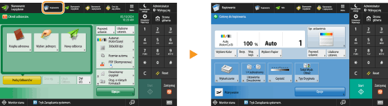 Na ekranie <Strona główna> możesz utworzyć przycisk skrótu do funkcji. Można skorzystać z tego przycisku, aby uzyskać dostęp do różnych funkcji bez konieczności powrotu do ekranu <Strona główna>. Aby utworzyć skrót, należy zalogować się z uprawnieniami administratora.