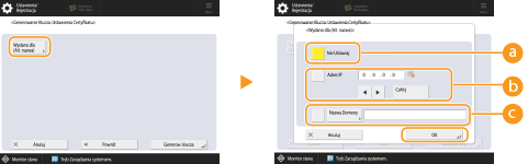 Naciśnij <Wydano dla (Alt. nazwa)>, określ adres IP lub nazwę domeny i naciśnij <OK>.