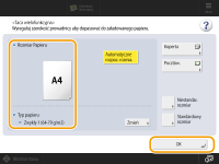 Ekran określania formatu i rodzaju papieru zostanie wyświetlony po zakończeniu wsuwania papieru.