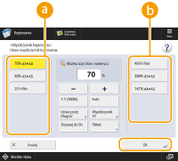 Zarówno dla <Rozm.Oryginału>, jak i <Rozmiar Kopii>, wprowadź wymiar pionowy lub poziomy. Przykładowo, jeżeli wprowadzić wymiar pionowy dla <Rozm.Oryginału>, wprowadź wymiar pionowy również dla <Rozmiar Kopii>.